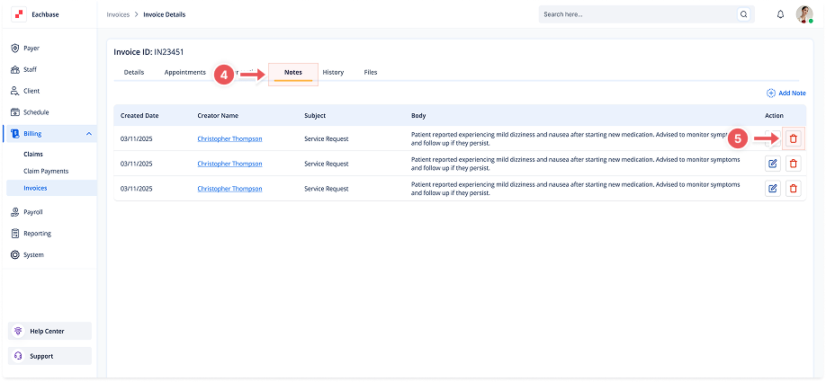 A confirmation modal will appear. To proceed, check the confirmation box (if applicable) and click the Delete button to permanently remove the note.