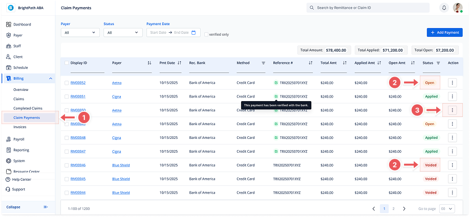 Go to Billing > Claim Payments from the left-hand menu.