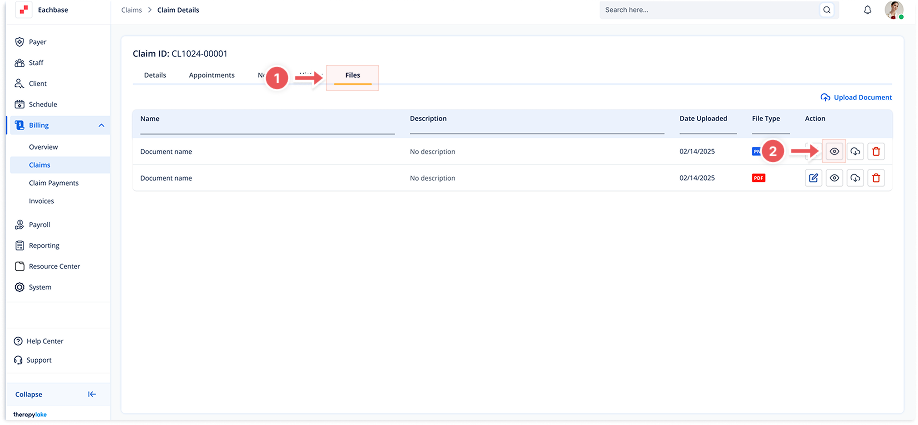 Once in the Claim Details screen, click the Files tab at the top of the page.