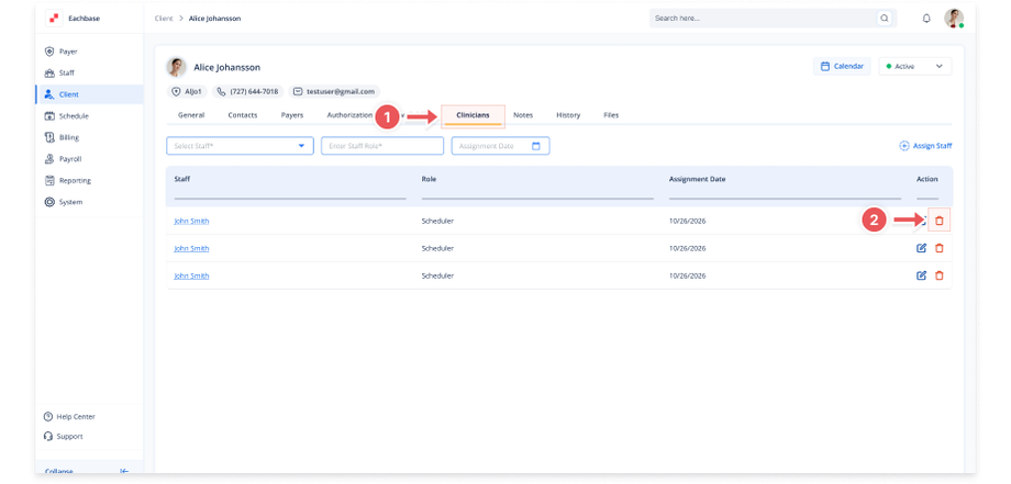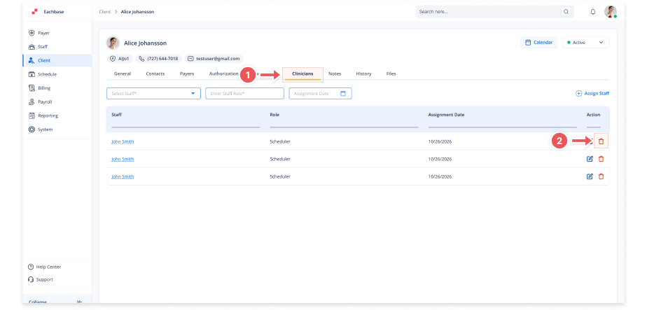 Deleting Assigned Staff from a Client