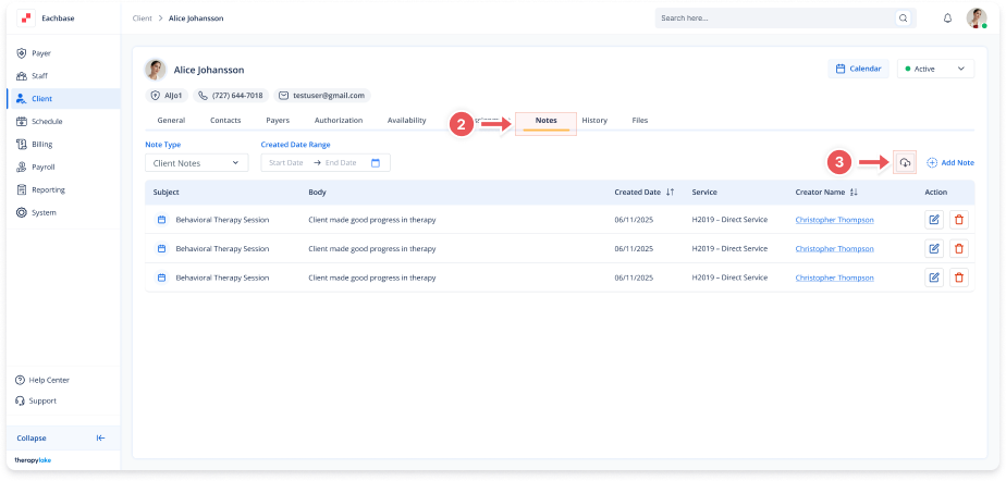Note Type: Choose either Client Notes or Session Notes