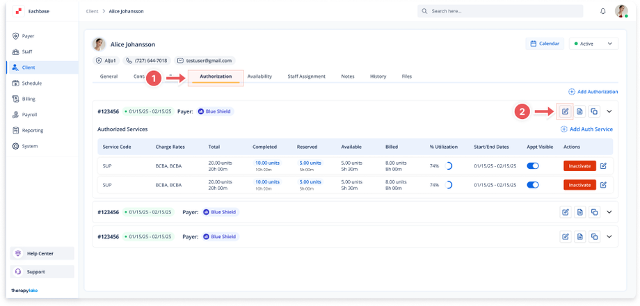 Ensure the updated authorization and authorized service details are correctly reflected in the Authorizations table.