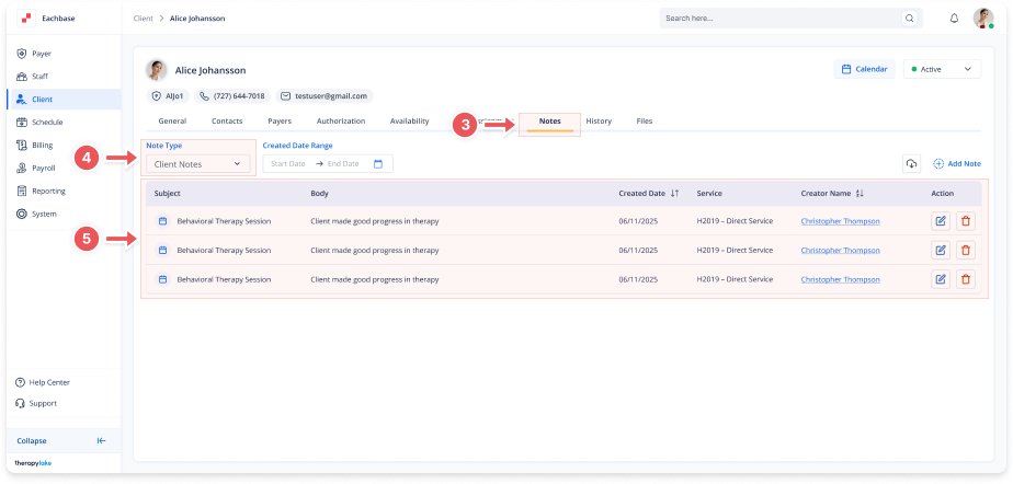 Viewing Client Notes