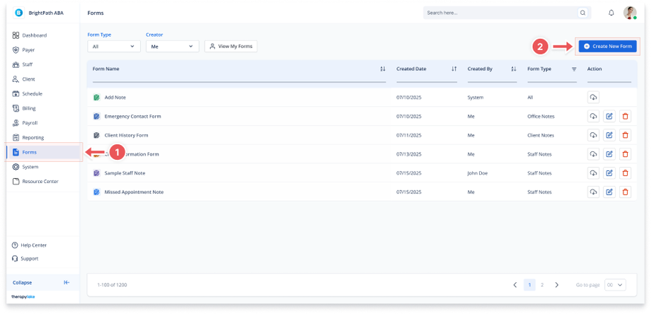 2. Click "Create New Form"