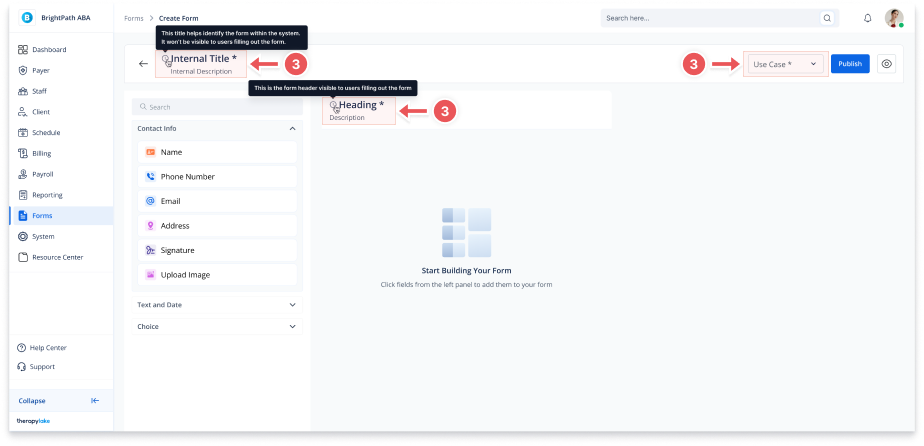 Use Case: Select where the form will be used (Staff Notes, Client Notes, etc.)