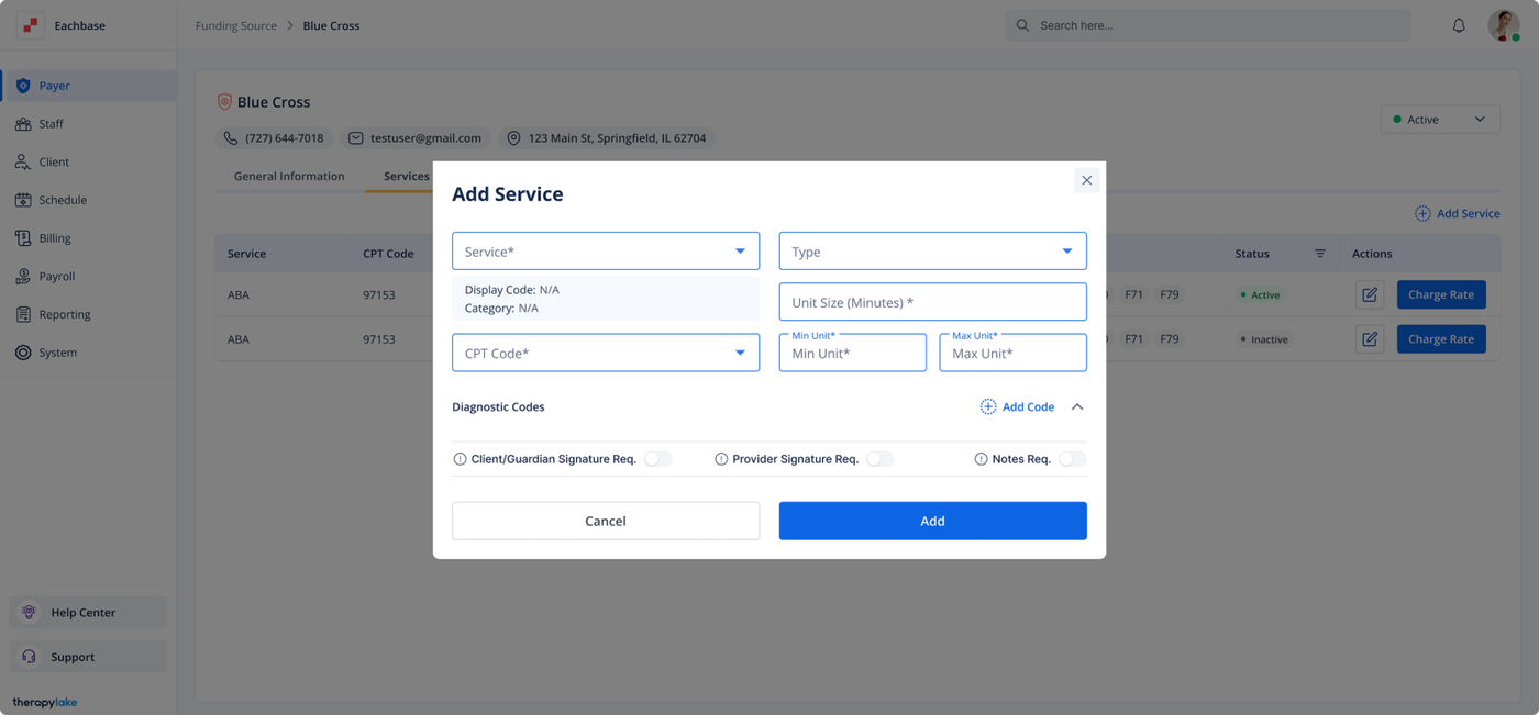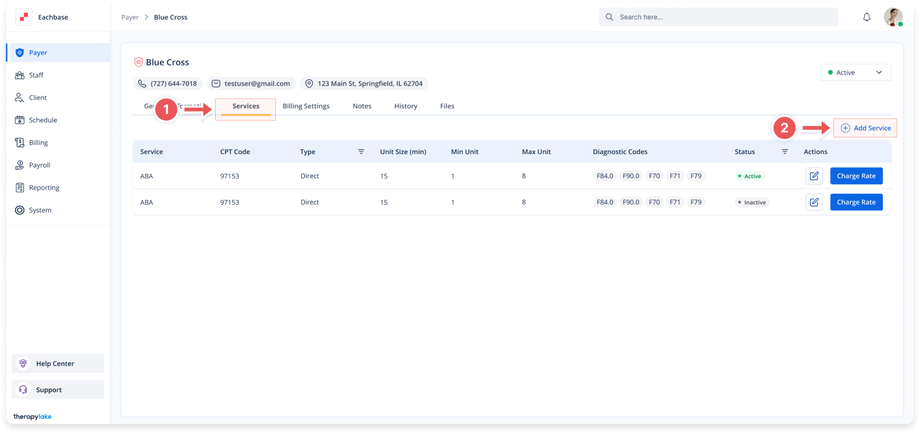 Select the Payer to which you want to add a service.