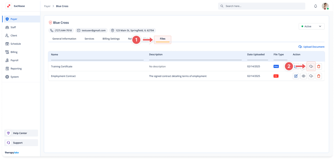 - Click on the Files tab at the top of the page to view all files associated with the Payer.