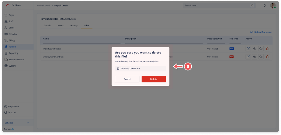 A confirmation prompt will appear. Click Delete to confirm the action.