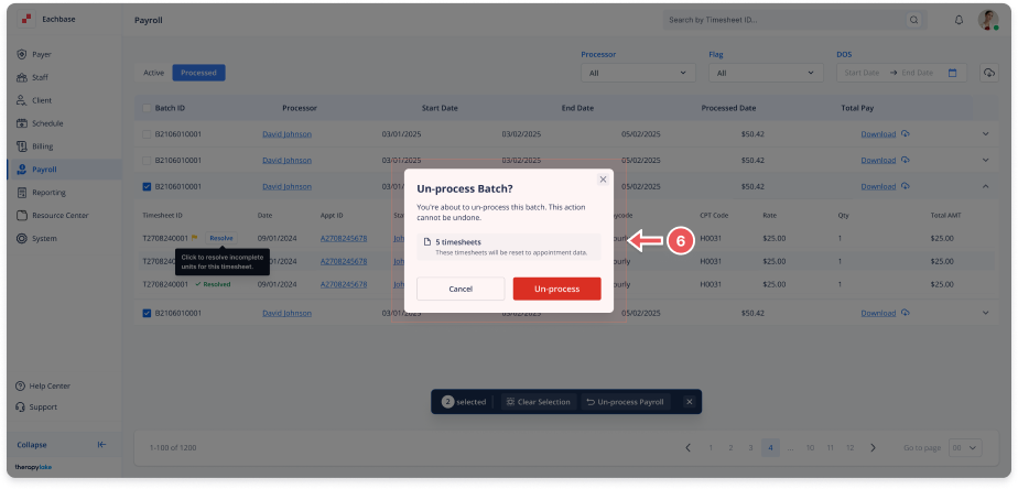 After clicking Un-process Payroll, a confirmation modal will appear.