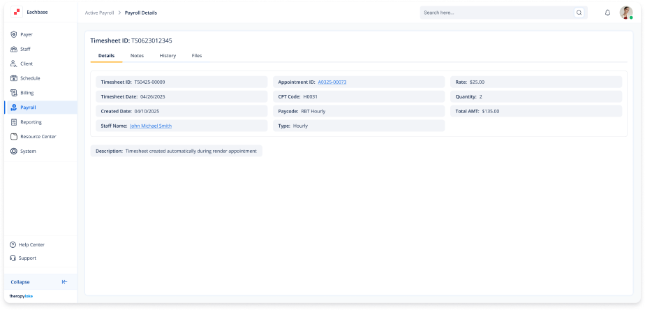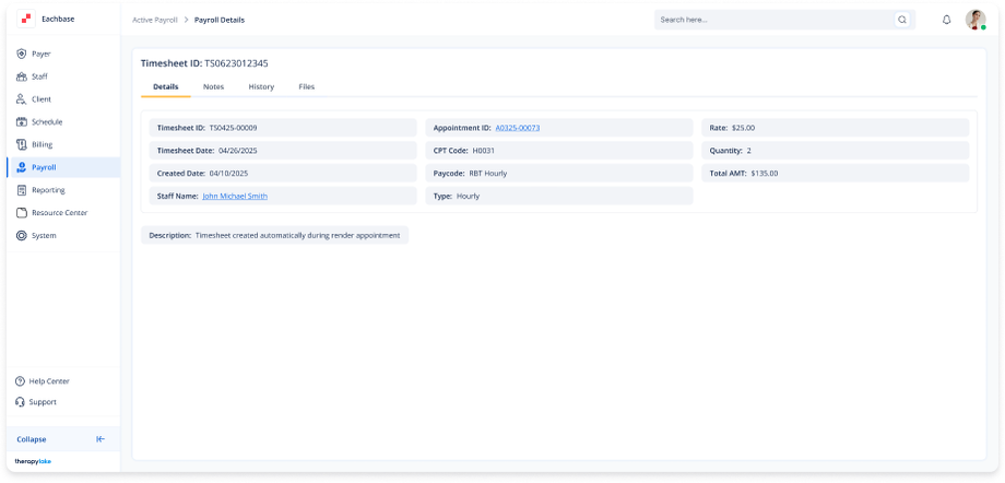 Click the Timesheet ID in the first column to open the details for that timesheet.
