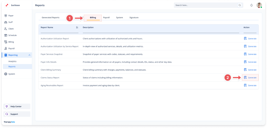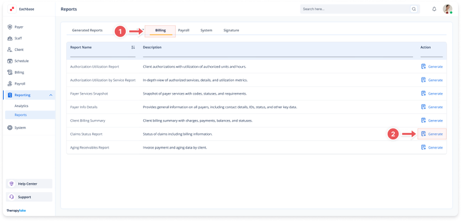 1. Navigate to Billing Reports