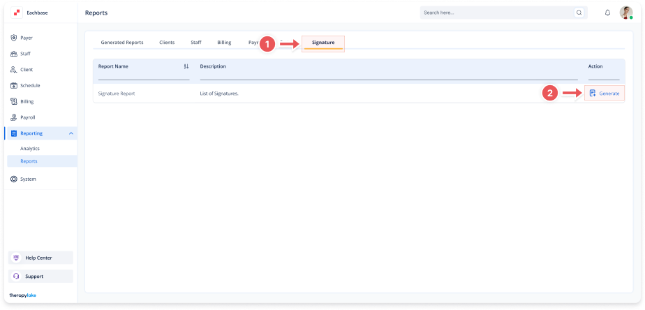 1. Navigate to Signature Reports