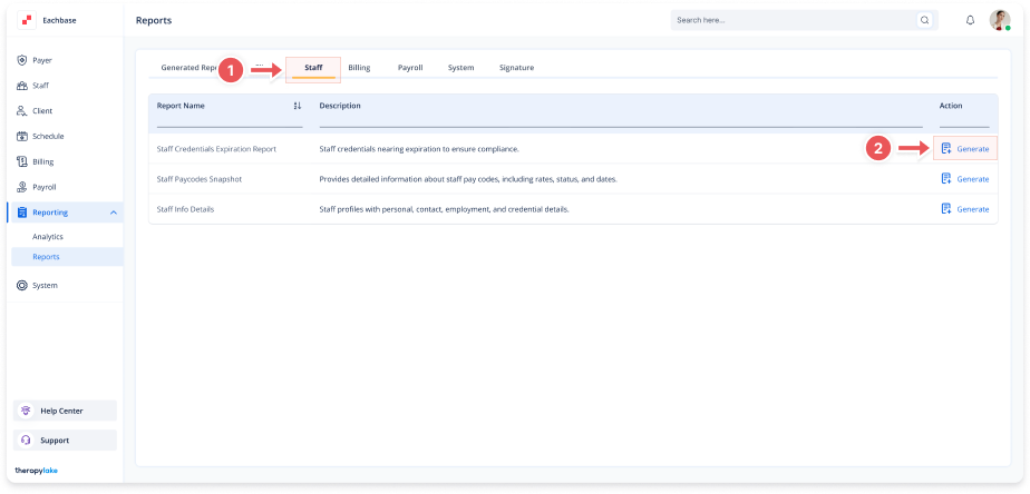 1. Navigate to Staff Reports