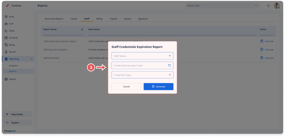 In the screen, locate Staff Credentials Expiration.