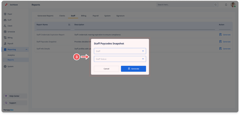 Generating Staff Paycodes Snapshot Report