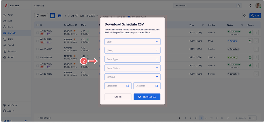 Start Date and End Date: Set the date range for which you want to download Appointments.