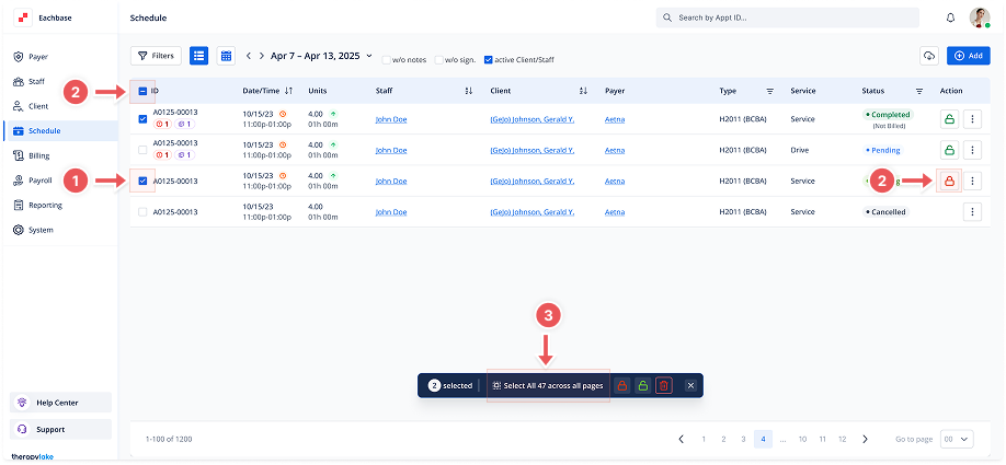 Manually Select: Check the checkboxes to the left of each appointment you want to lock or unlock.