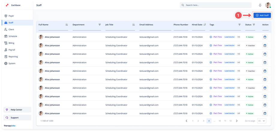 - The newly added staff member will appear in the staff table.