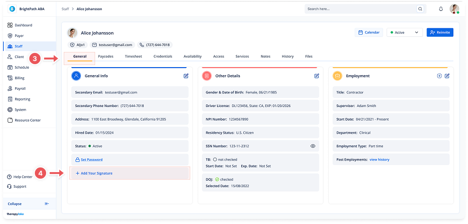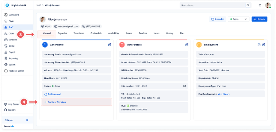 Choose the staff member for whom you would like to add or edit general information.