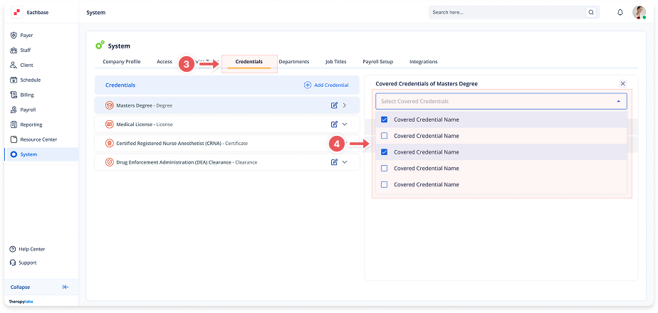 Credential Name: Enter the name (e.g., "Registered Behavior Technician", "Licensed Behavior Analyst")