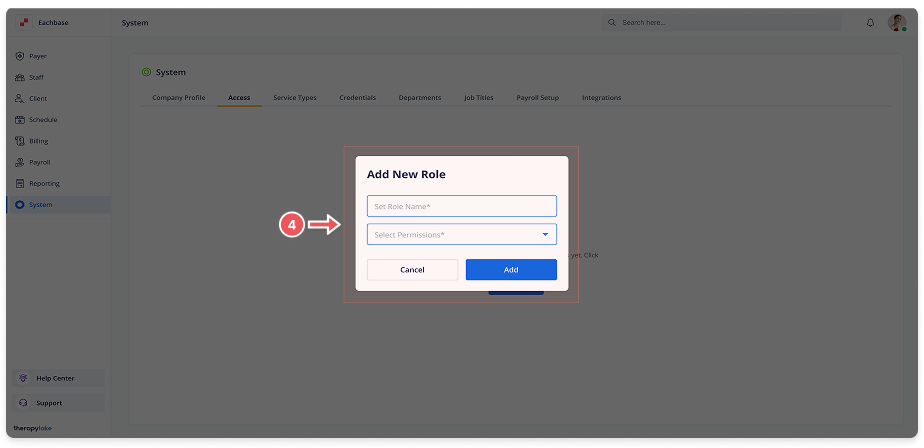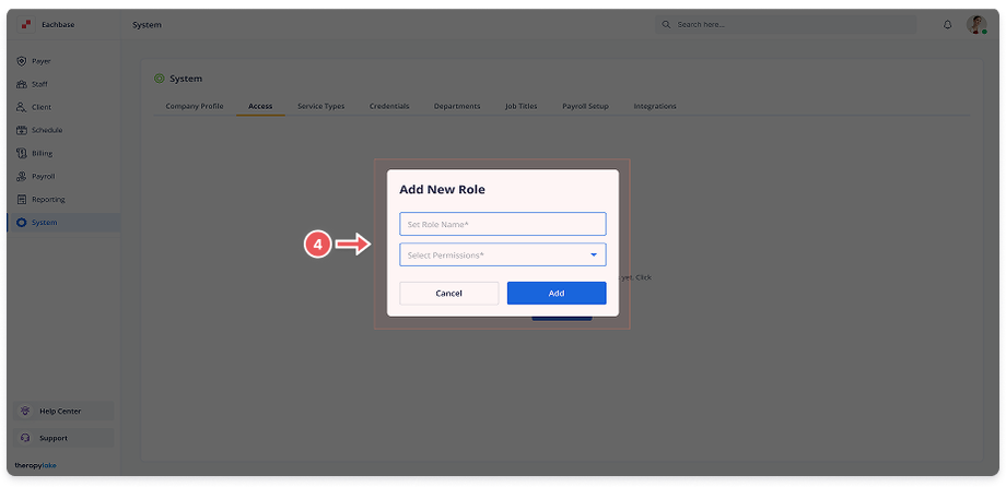 Set Role Name: Enter the name of the role (e.g., "HR Manager" or "Billing Specialist").