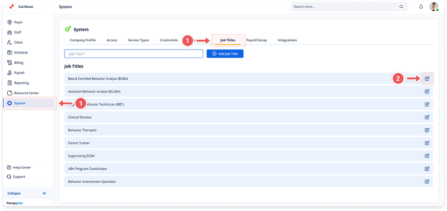 2. Access Job Titles Tab