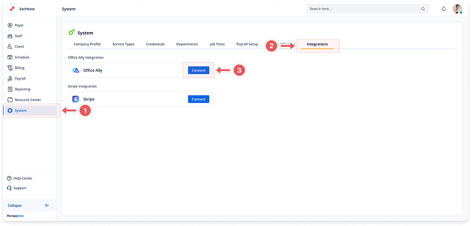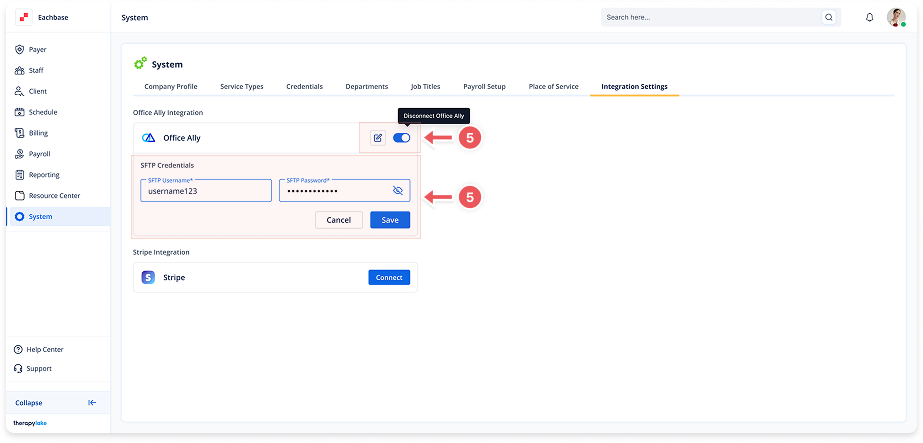 Office Ally integration can be turned on/off using the toggle.