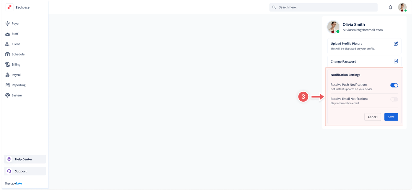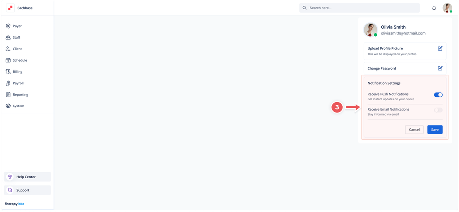 - Toggle the "Receive Email Notifications" switch to enable or disable email notifications.